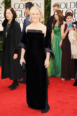 Glenn Close's Armani Prive outfit reminded me of a deconstructed wizard robe, with a little spangly crumb catcher bib thing stuck in the front at the last minute. It just didn't do anything for her.
